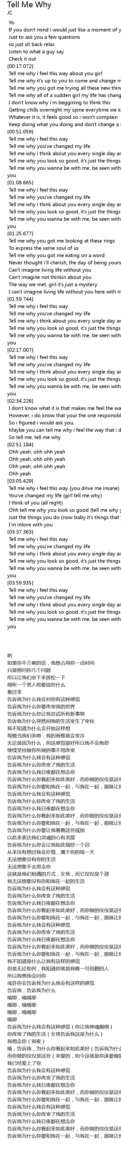 | [02:48.438] | So tell me, tell me why |