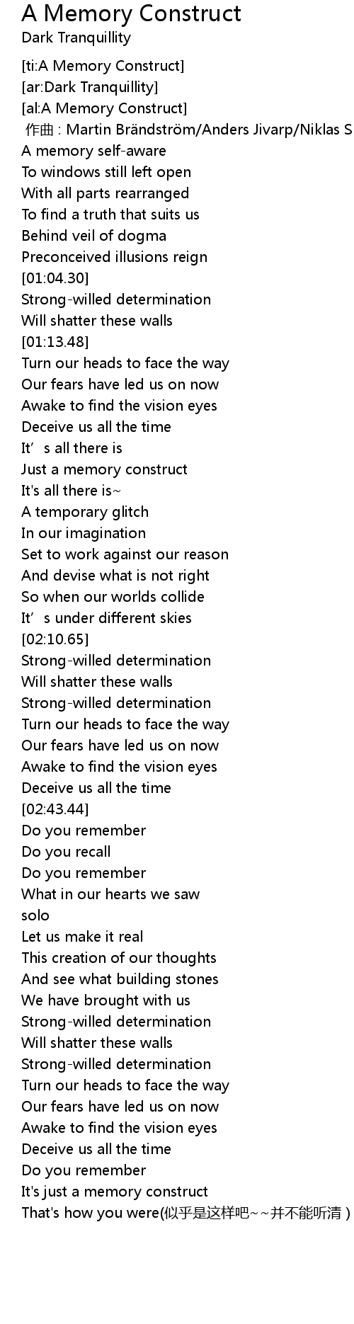 | [01:42.03] | Just a memory construct |