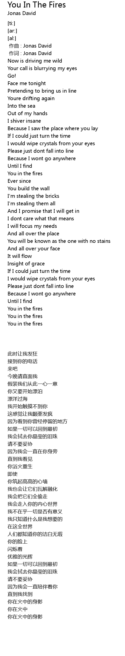 | [00:01.00] | 作词 : Jonas David |