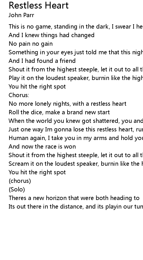 No more lonely nights, with a restless heart |