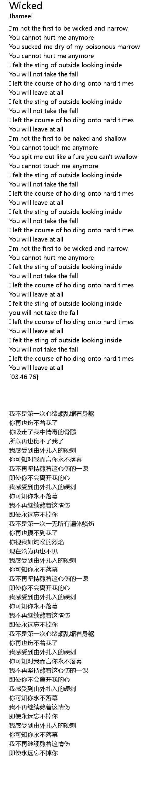 | [00:20.17] | I'm not the first to be wicked and narrow |
