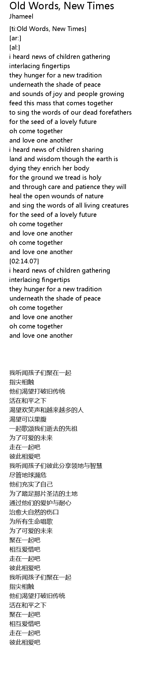 [ti:Old Words, New Times] |