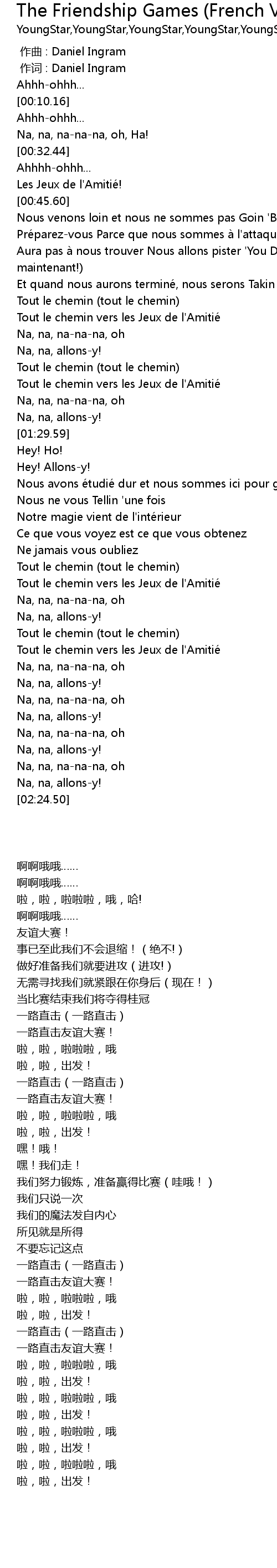 | [02:04.66] | Tout le chemin vers les Jeux de l'Amitié |