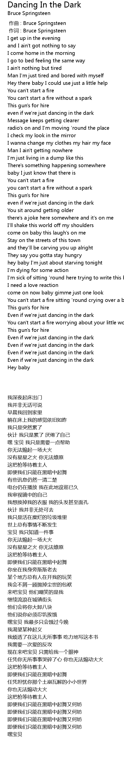 | [00:01.00] | 作词 : Bruce Springsteen |