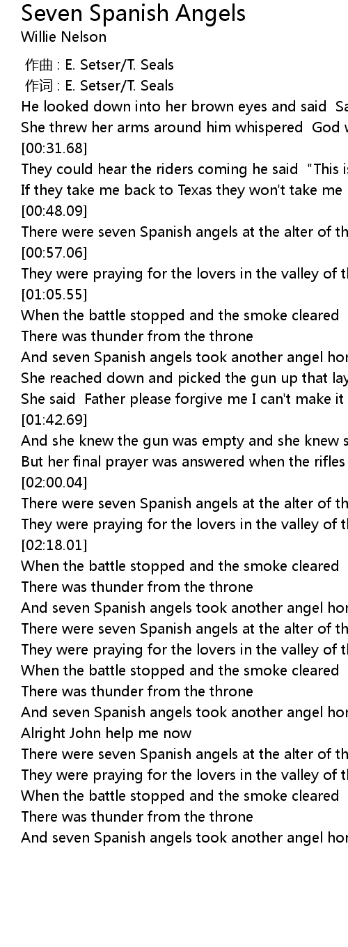 | [03:38.63] | And seven Spanish angels took another angel home |