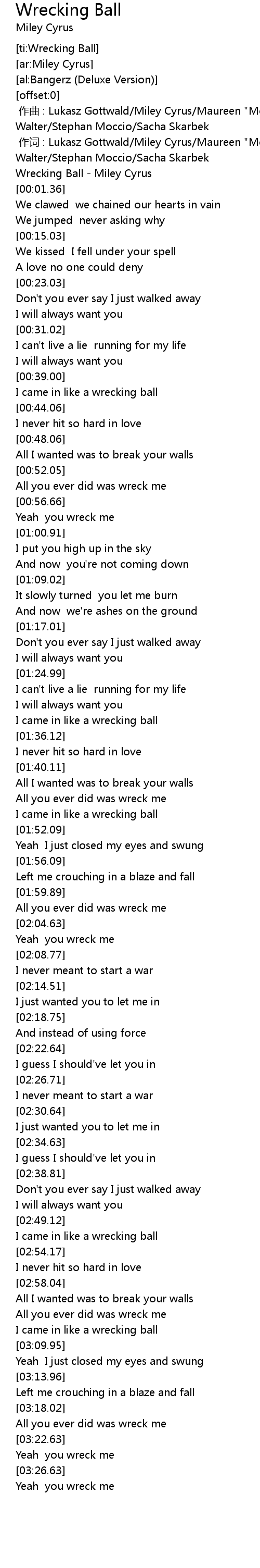 | [00:00.24] | Wrecking Ball - Miley Cyrus |