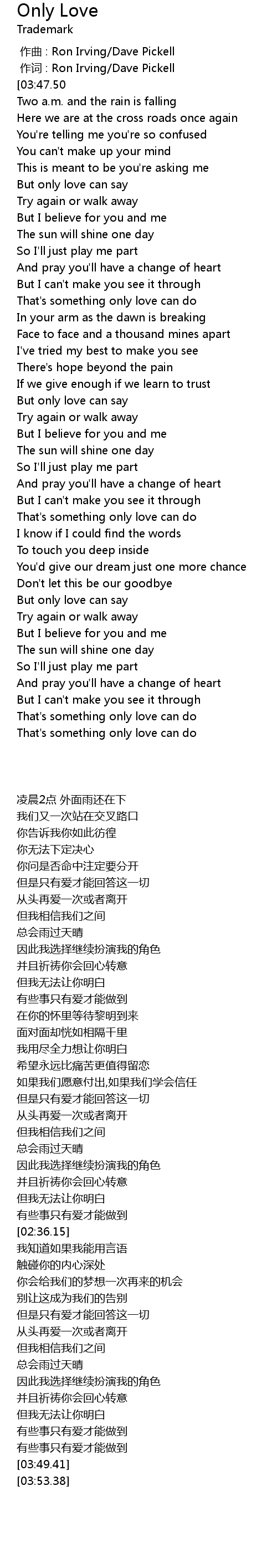 | [03:34.30] | That's something only love can do |