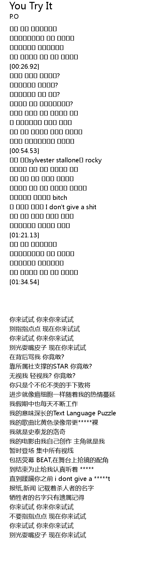 | [01:31.17] | 입만 나불대지 말고 이제 니가해봐 |