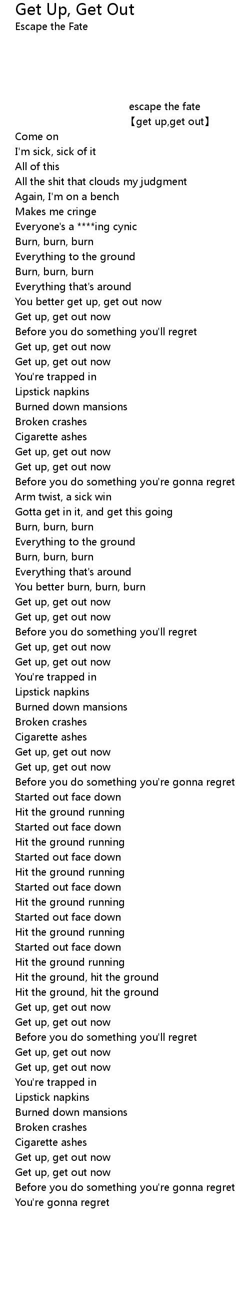 | [03:00.10] | Get up, get out now |