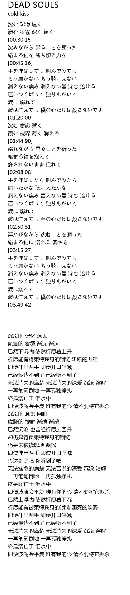 | [03:22.83] | 消えない痛み 消えない愛 沈む 溶ける |