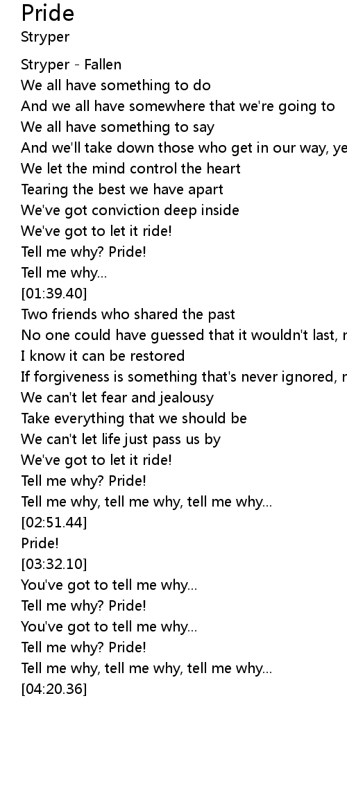 | [02:33.08] | Tell me why? Pride! |