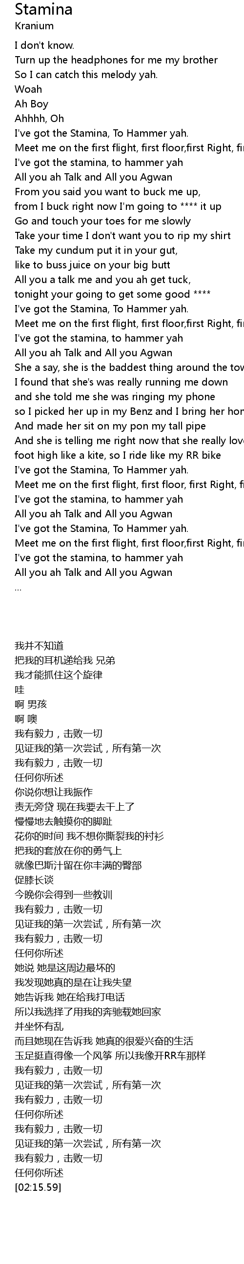 | [00:58.65] | I've got the Stamina, To Hammer yah. |