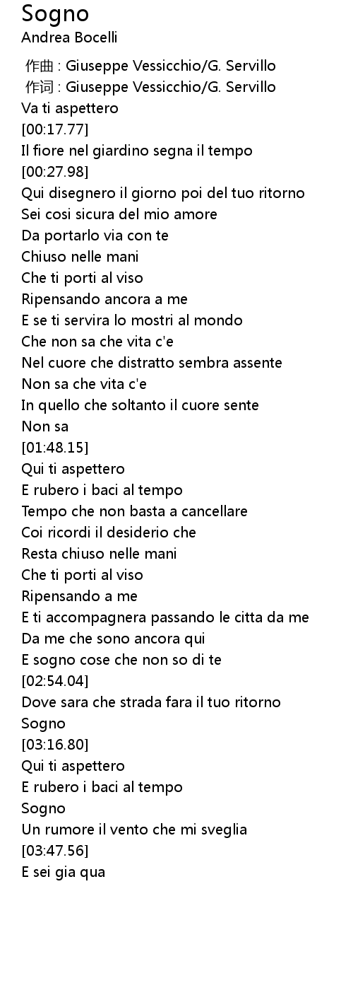 | [00:01.00] | 作词 : Giuseppe Vessicchio/G. Servillo |