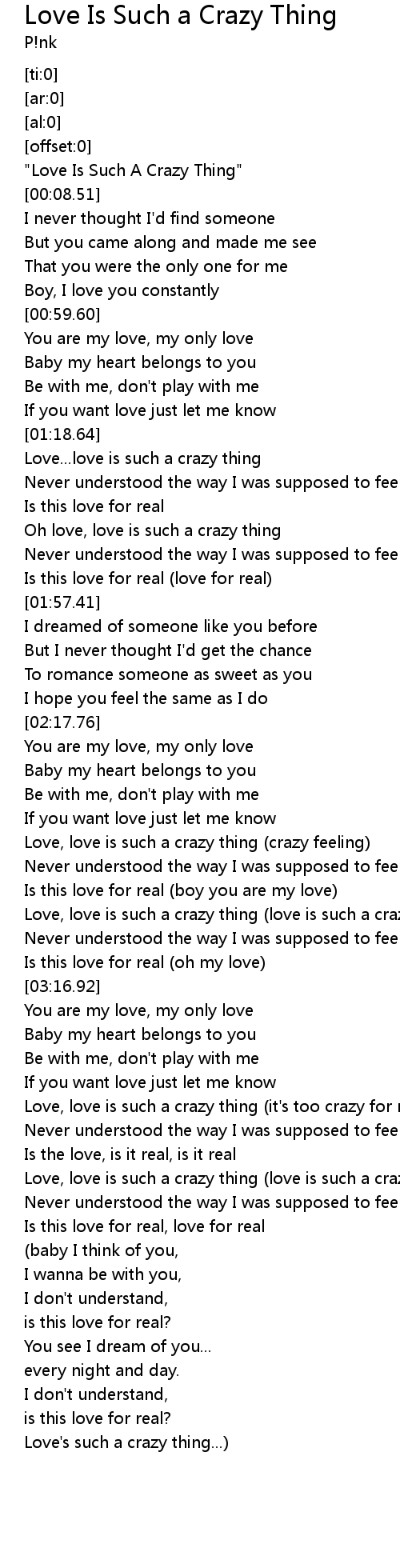 "Love Is Such A Crazy Thing" |