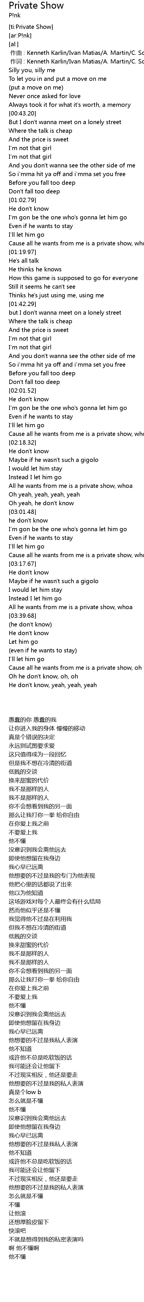| [02:34.40] | All he wants from me is a private show, whoa |