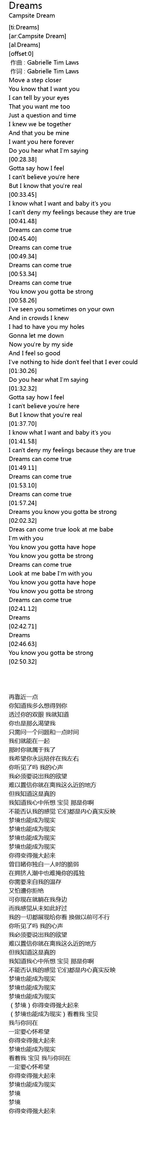 | [00:50.15] | Dreams can come true |