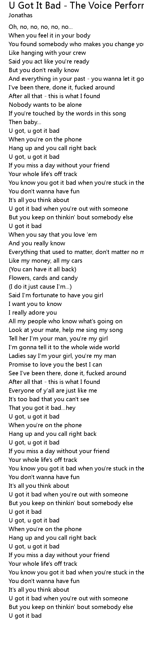 U got, u got it bad |