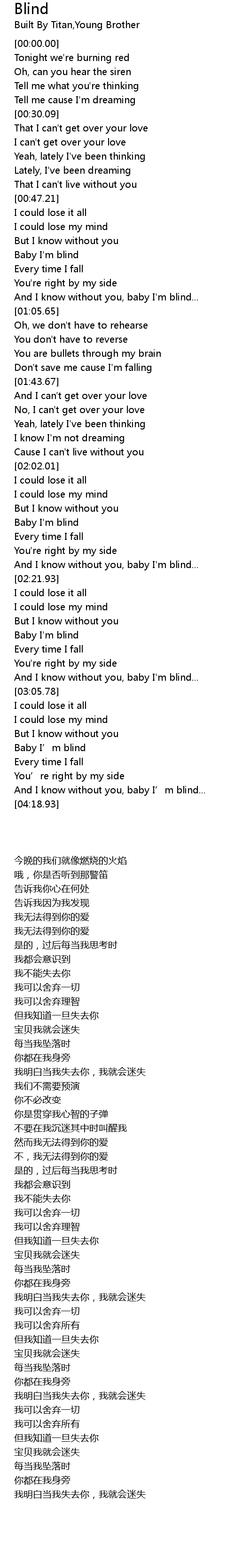 | [00:58.71] | And I know without you, baby I'm blind... |