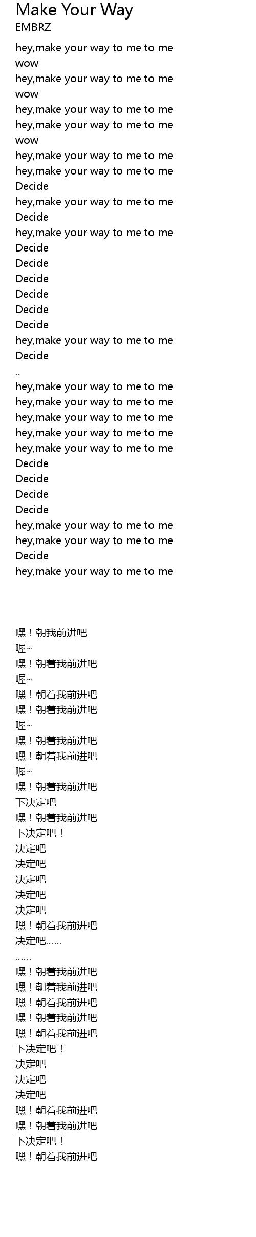 hey,make your way to me to me |
