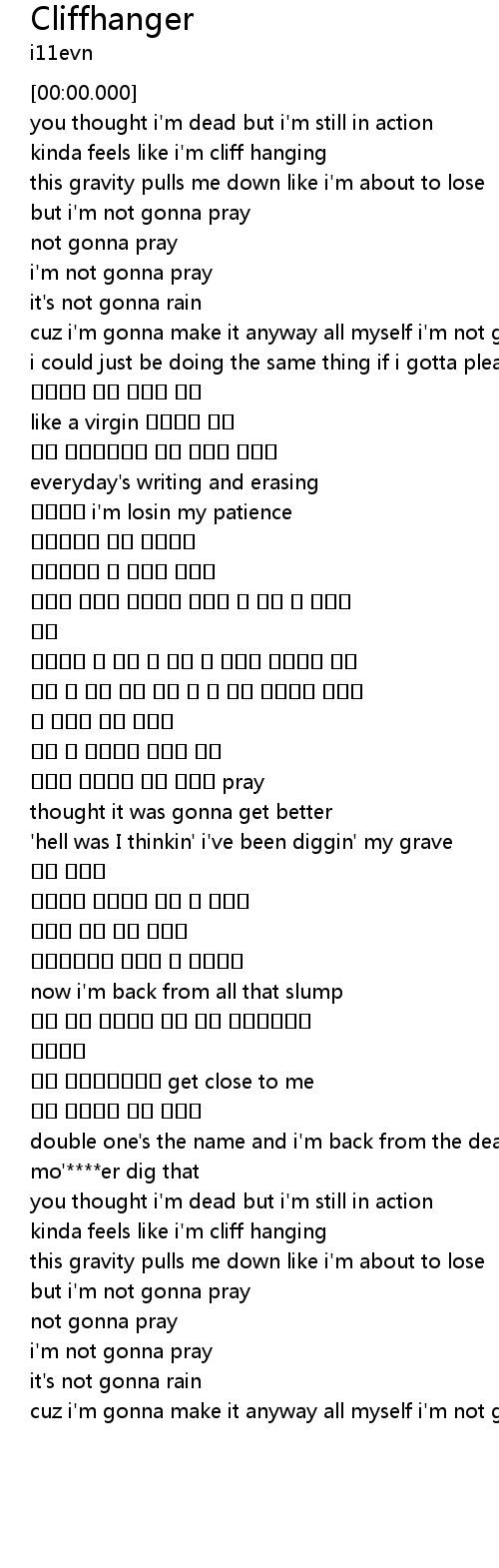 | [00:18.550] | kinda feels like i' m cliff hanging |