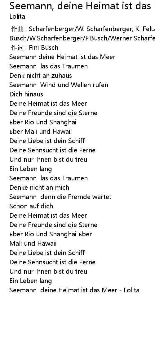 | [02:44.15] | Seemann deine Heimat ist das Meer Lolita |