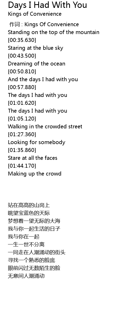 | [00:00.00] | 作词 : Kings Of Convenience |