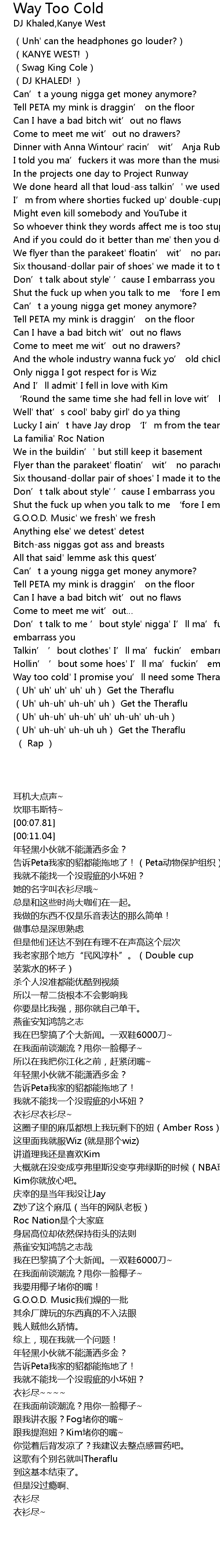 | [01:03.32] | Tell PETA my mink is draggin’ on the floor |