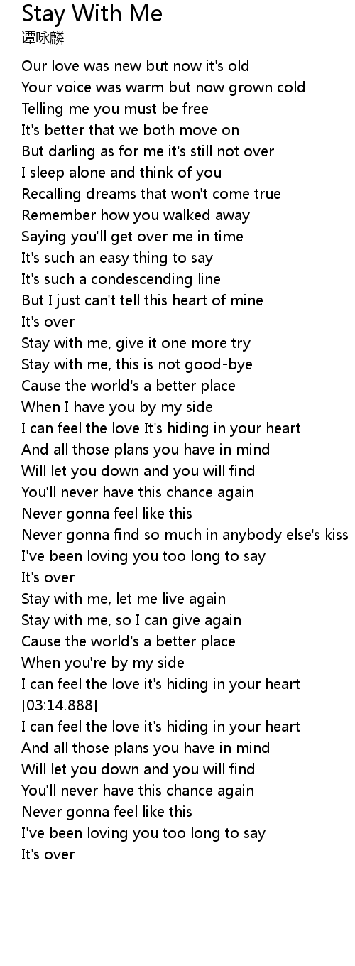 | [01:43.809] | Stay with me, this is not good-bye |