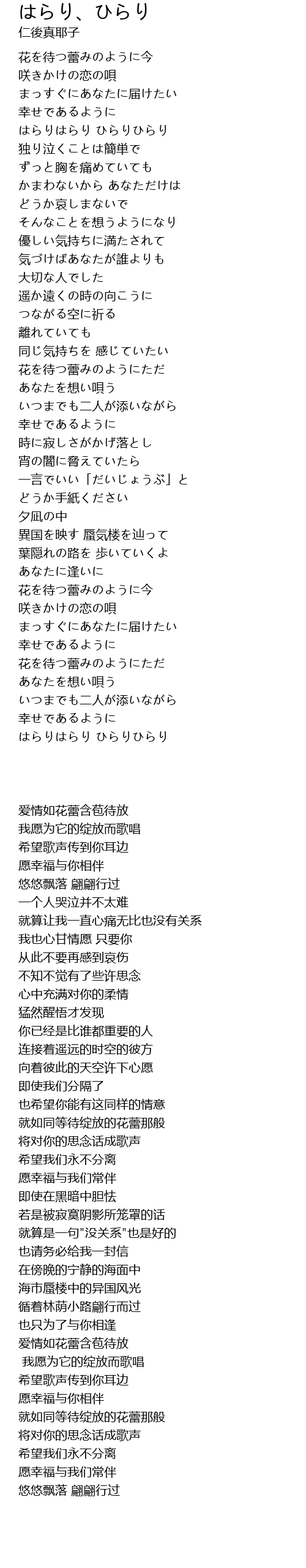 | [00:27.54] | はらりはらり ひらりひらり |