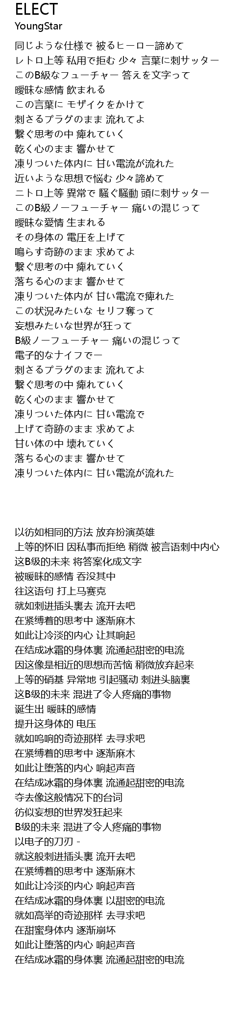 | [02:24.55] | 凍りついた体内に 甘い電流で |