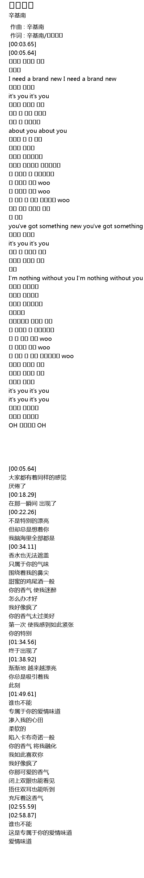 | [00:01.00] | 作词 : 辛基南/리리크루 |