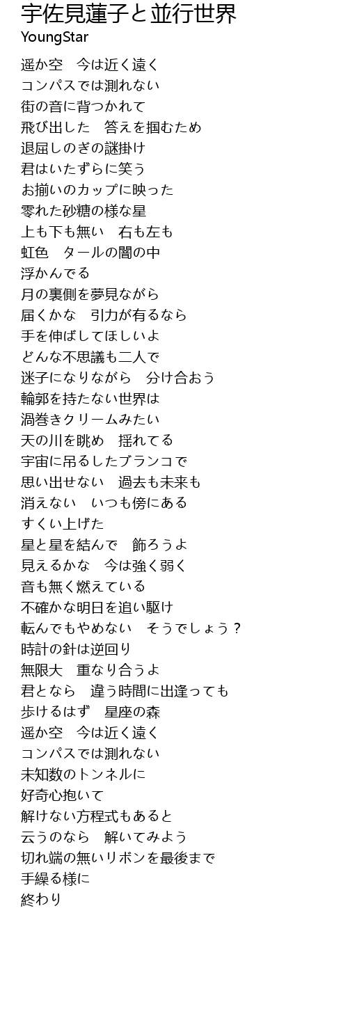 | [01:54.05] | 宇宙に吊るしたブランコで |