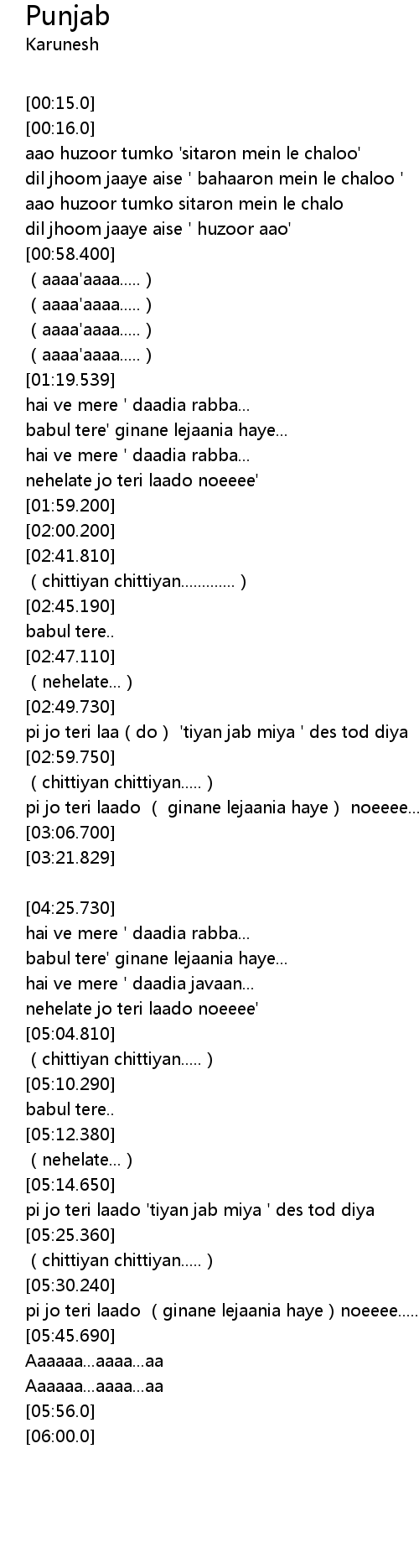| [02:50.0] | pi jo teri laa do ' tiyan jab miya ' des tod diya |
