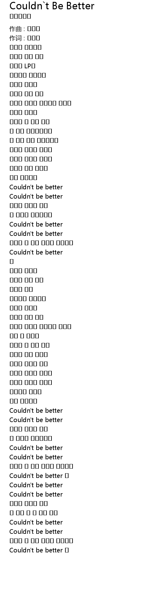 Couldn`t Be Better Lyrics