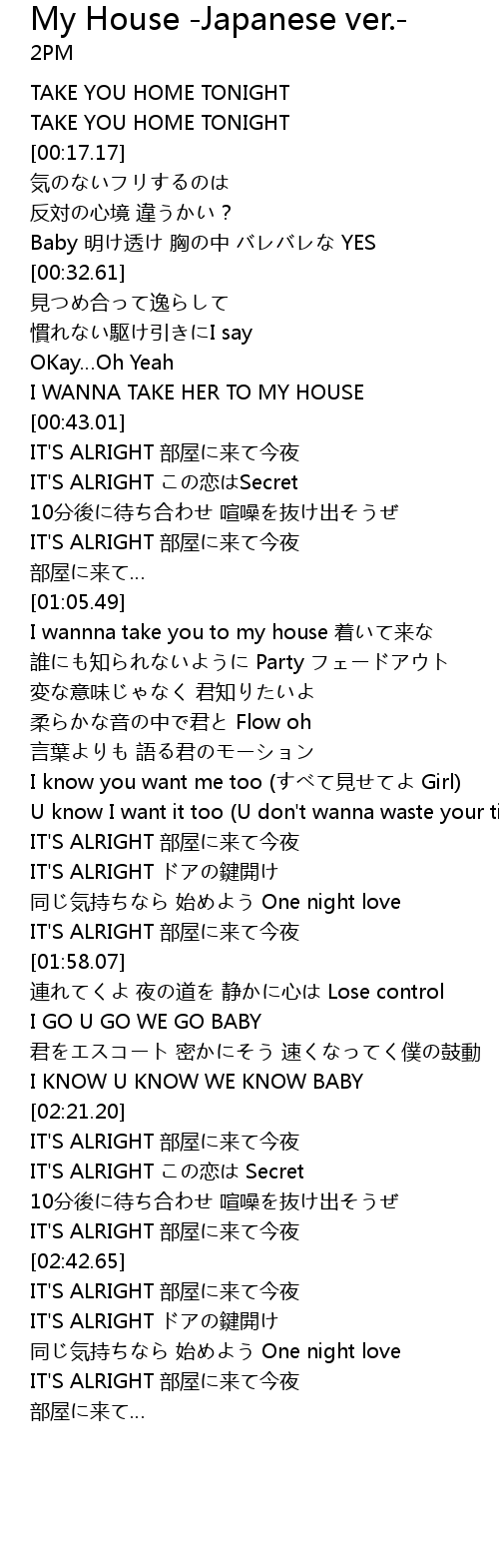 | [00:41.77] | I WANNA TAKE HER TO MY HOUSE |