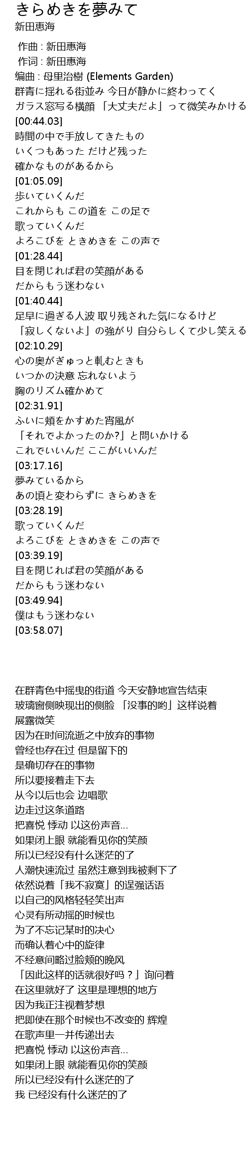 | [03:22.38] | あの頃と変わらずに きらめきを |