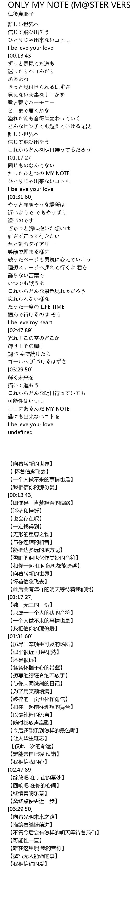 | [01:20.41] | たったひとつの MY NOTE |