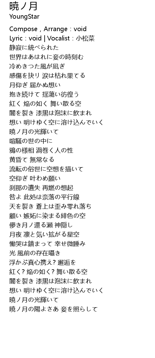 | [00:11.60] | Lyric: void Vocalist: xiao song cai |