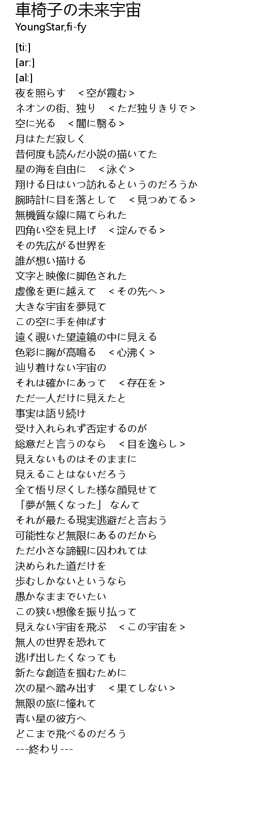 | [04:11.25] | 次の星へ踏み出す <果てしない> |