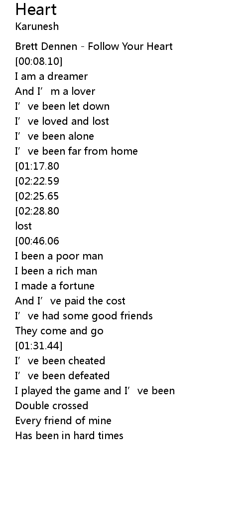 | [00:01.12] | Brett Dennen Follow Your Heart |