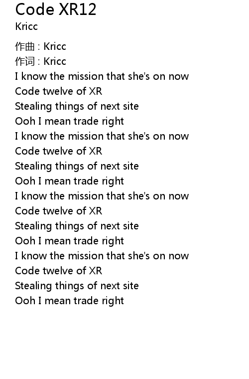 | Song | Code XR12 |