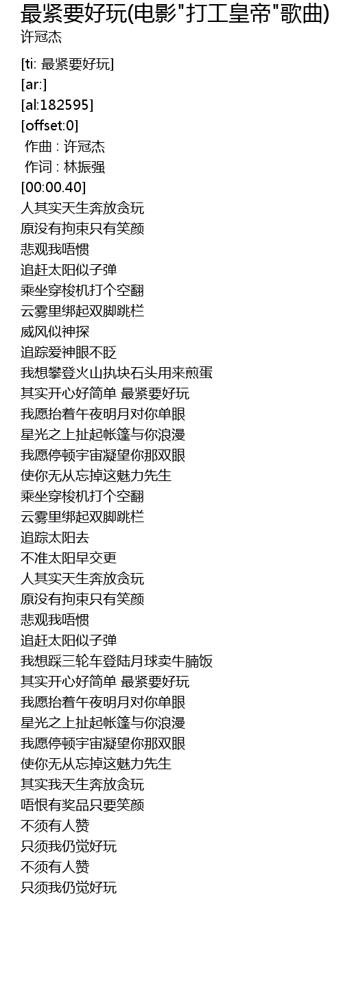 | [00:53.60] | 其实开心好简单 最紧要好玩 |