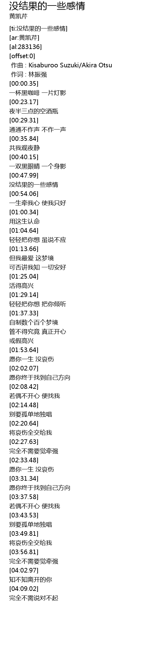 | [00:49.59] | méi jié guǒ de yī xiē gǎn qíng |