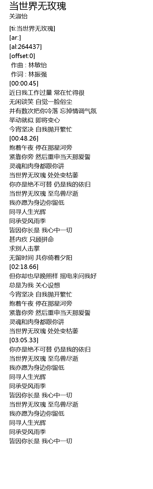 | [01:09.90] | 当世界无玫瑰 处处变枯萎 |