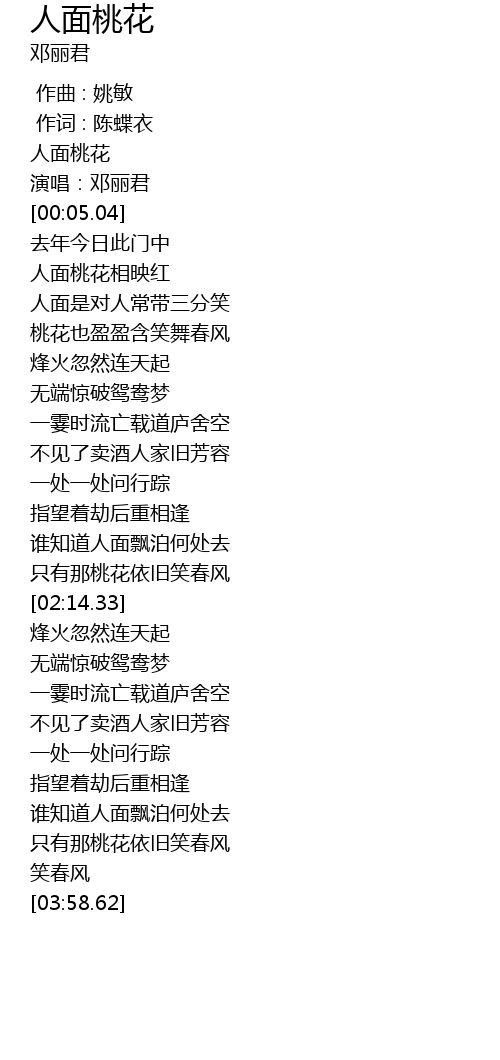 | [02:03.01] | 只有那桃花依旧笑春风 |