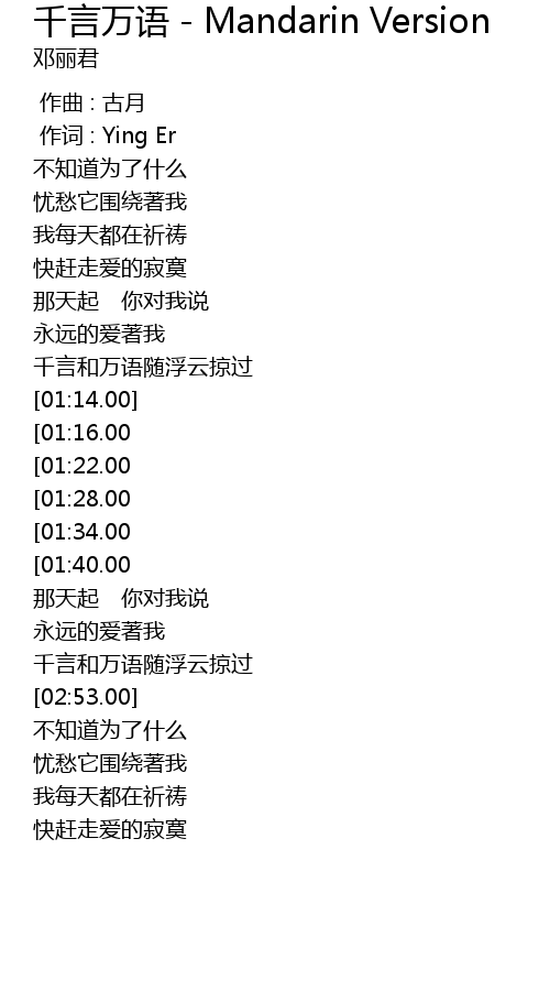 | [01:02.00] | qiān yán hé wàn yǔ suí fú yún lüè guò |