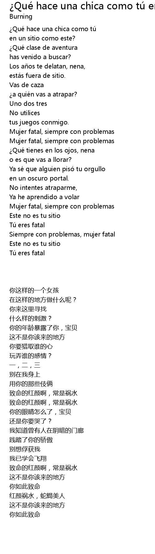 | [03:04.12] | Siempre con problemas, mujer fatal |