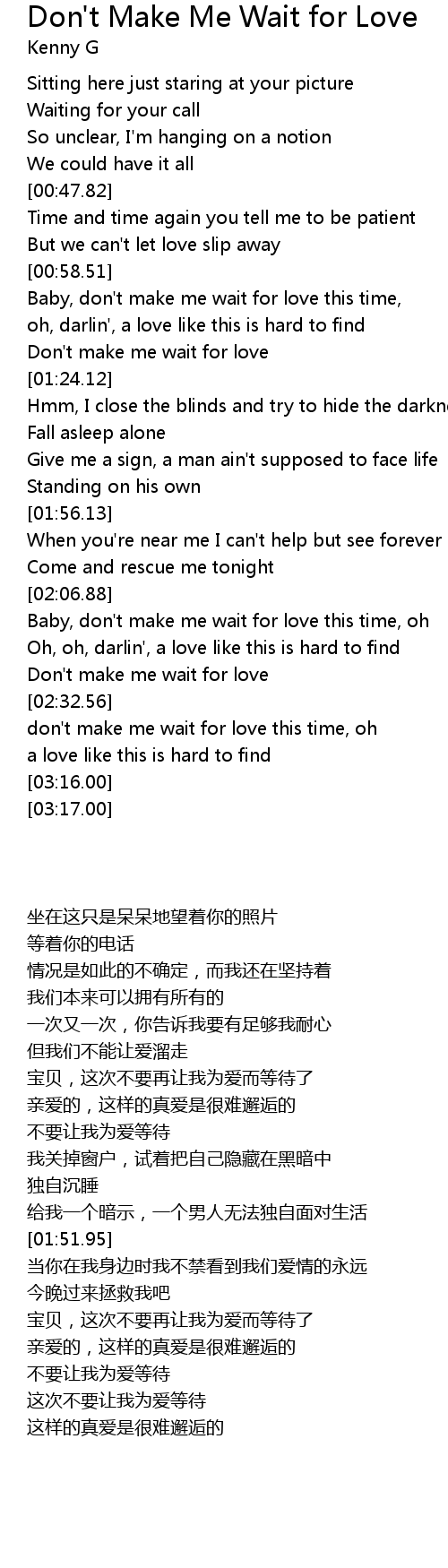 | [02:11.44] | Baby, don't make me wait for love this time, oh |