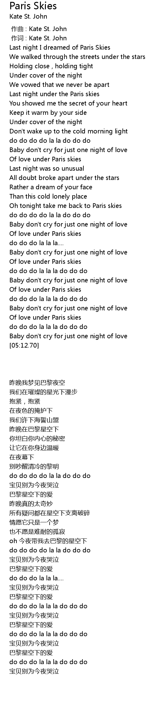 | [00:11.05] | Last night I dreamed of Paris Skies |