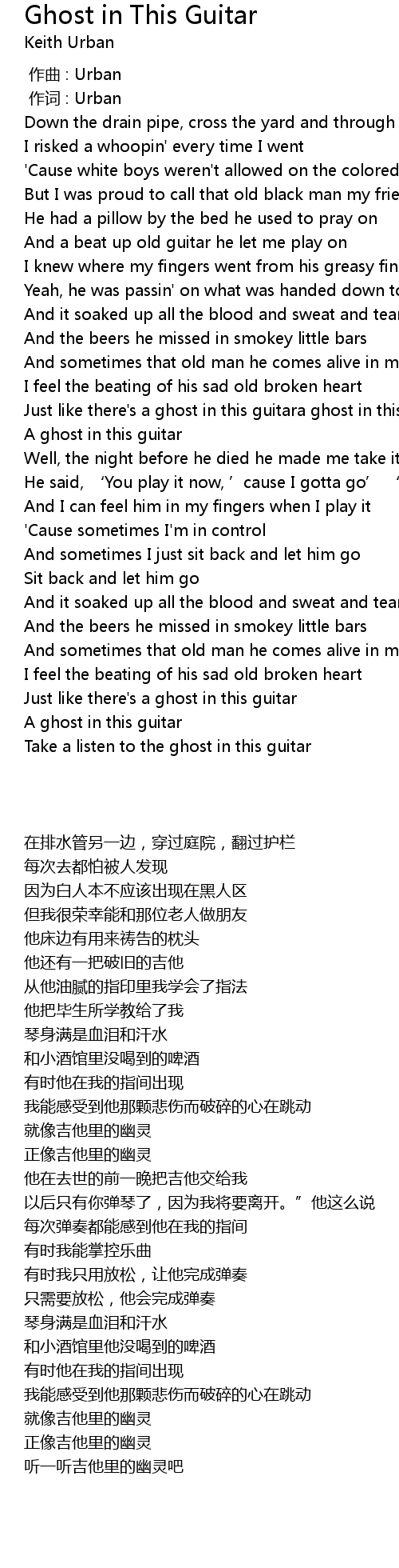 | [01:25.38] | Just like there' s a ghost in this guitara ghost in this guitar |